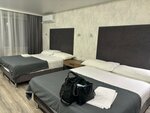 Бюджетная гостиница в отделении. Внешне и внутри здания -попадаешь в период 90х. Номер был комфорт с большой душевой, достаточно чист. Тапочки, халат, зуб щётку положили на одного заезжающего , хоть номер на двоих, но вопрос без проблема решен. В санузле только полотенца. И в большом дозатора гель и мыло. На раковине не хватает стакана для зуб щёток. Не хватает полотенца для ног или коврика. Кровать двухместная составная, нескрепленная, и если спать в центре, то кто-то оказывается в дырке между кроватями. Горничные не обращают внимание на неработающий светильник + не совсем качественно помоют пол в комнате...