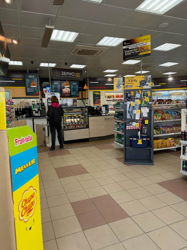 Плюсы: Бензин хороший, персонал приветливый, большой ассортимент кондитерки (особо вкусные пирожные картошка), в магазине всё необходимое в наличии, въезды удобные. Минус: выезды очень кривые, пол района нужно объехать, чтобы на шоссе вернуться. P.S. У них есть колоритный заправщик, очень на Бориса Джонсона похожий, скорее всего от бывшего владельца - BP остался, присматривает на всякий случай :-)