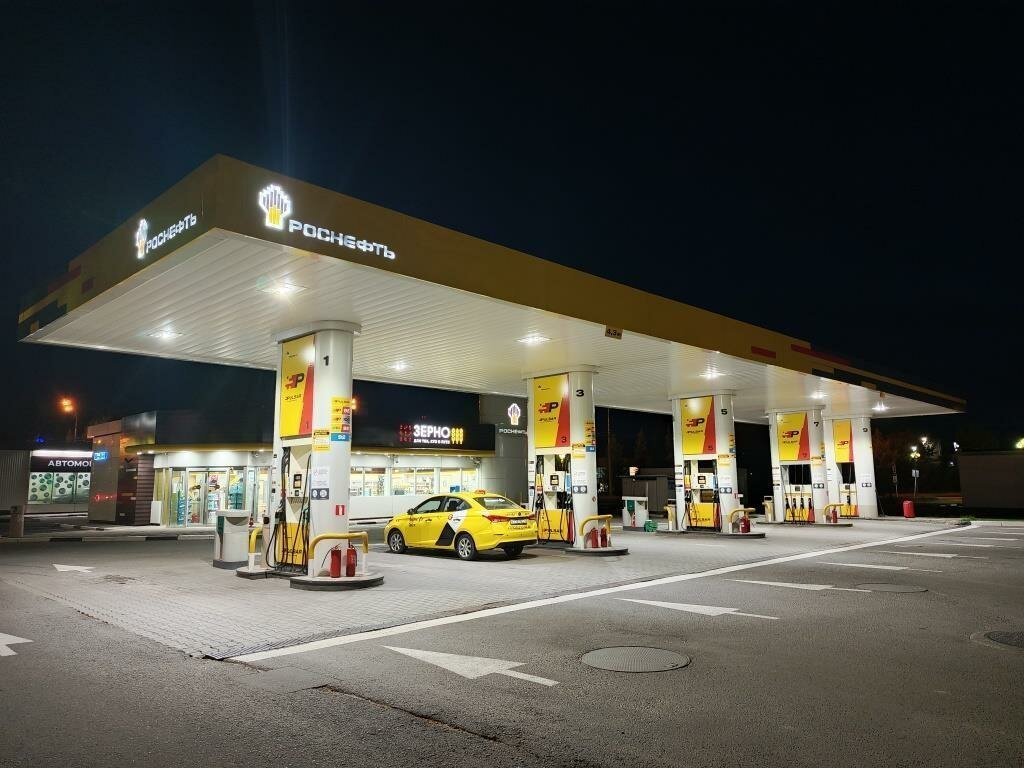 Нормальная заправка сети "Роснефть". Все, как и на других подобных АЗС "жёлто-черного" цвета. Внутри тепло, красиво, есть несколько касс; можно купить что-нибудь с собой в дорогу (но, как всегда, цены на сопутствующие товары высокие). На территории заправки существуют нормальные парковочные места, чтобы не мешать заправляющимся и в тоже время немного отдохнуть от дороги. У самих колонок работают ребята-заправщики.
