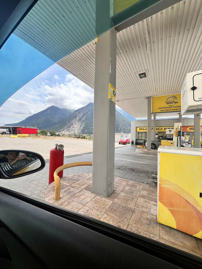 Приятно была удивлена, когда заправившись до полного бака после приезда в Теберду , на табло полный бак у меня был еще после двух поездок в Домбай. Такого еще ни разу не было. Цена на 95 такая же, как и на других заправках роснефти по пути +-