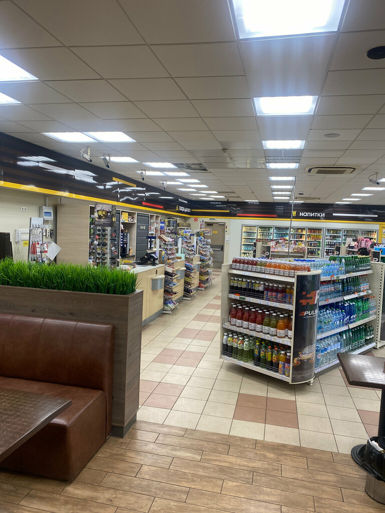 Заезд с трассы в огромных ямах, в которых можно оставить подвеску. Ночью заезжать не рекомендую. Грязный туалет, в котором сломано половина кранов. Зал неплохой, но очень мало столиков и много ничем не занятого пространства - почему бы не поставить ещё пару? Кофе водянистый, но пить можно. Топливо как везде - ничего особенного не заметил