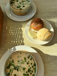 Уютное кафе-ресторан. Приятный персонал. Вкуснейшая уха с хлебной корзинкой. сырники со сметаной изумительные, даже в городе не такие свежие и вкусные. Блины со сметаной самые вкусные, что пробовала. Много десертов, выпечки. Есть салаты, супы, паста. Вкусный кофе. Всегда сюда заезжаем, когда плывем на остров Коневец. Напротив отель, речной вокзал с катерами и паром на остров Коневец.