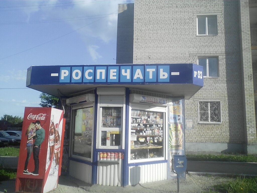Обычный киоск Роспечати с милой бабушкой за окошечком.