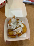 И вот за эту маленькую порцию маленькой деревенской картошки я отдала почти 200 рублей якобы она должна быть с сыром, но это тупо маленький плевок сырного соуса