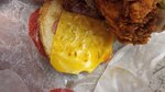 Ну, собственно, куча соуса, 2 куска курицы, размазанные пару кусочков помидора еле вон видно и один лист салата. Ребят, мы путешествуем по городам, есть с чем сравнить и честно, это самый тонкий и неукомплектованный заказ. Как бэ…ситуация неприятная.