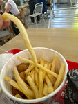 очень плохое заведение ростикс, при большой нагрузке не справляются с заказами, вместо моей стандартной картошки фри выдали маленькую, подошел спросил они сказали что все правильно, первый раз такое вижу, огорчили. выдали только промокод 10%, который вообще ничего не дает, деньги потрачены в пустую. P.S. зашел еще вечерком за чикенбургером, голоден был, мне его вообще сухим сделали, ни капли соуса, так что персонал работает ужасно, закажите лучше рядом во вкусно и точка, намного лучше будет.