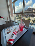 Заказывал шефролл и лимонад со вкусом сакуры и белого персика . Заказ приготовили быстро и всё было вкусно . Столики чистые. А самое главное это вид на горы. Для меня это однозначно лучший ресторан Rostic’s