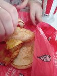 Заказали шеф бургер джуниор оригинальный, котлета в нем состоит из двух стрипсов, в одном из них попалась кость. Сделали новый, горячий бургер достаточно быстро. Перед этим уточнили, что бургер ОРИГИНАЛЬНЫЙ. Начинаю его есть, и оказывается, что он острый. На обертке так же написано что "острый". Ужас!