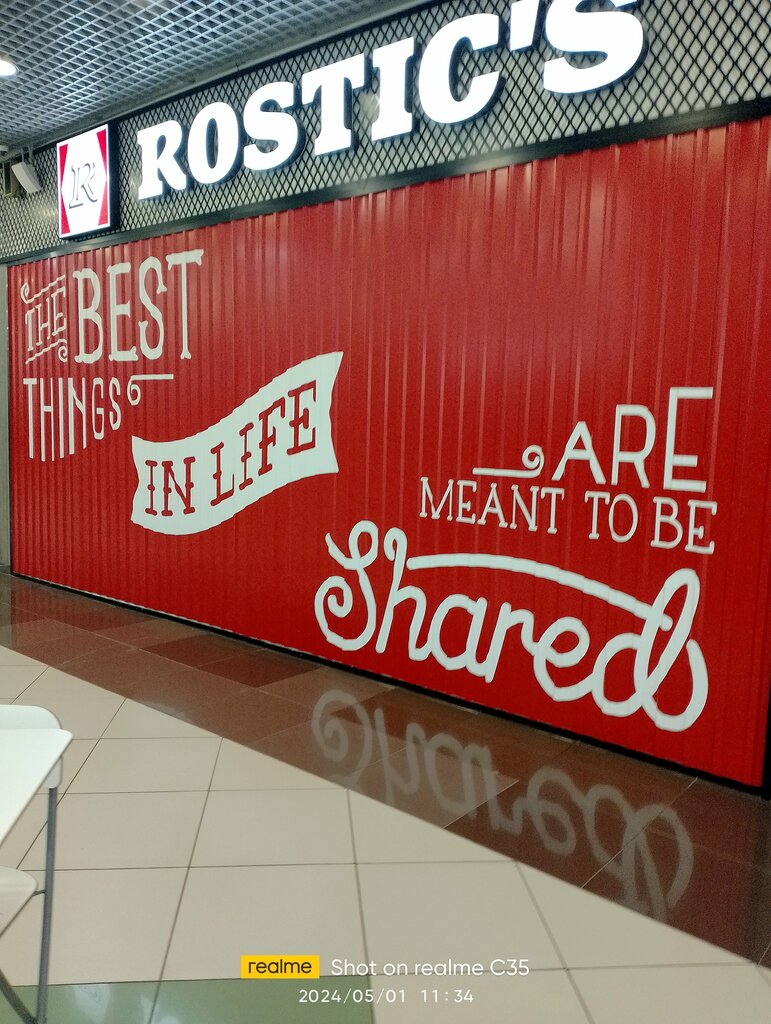 Супер заведение, оно порадовало своей чистотой,отзывчивыми сотрудниками и интересными блюдами в меню, хочу по рекомендовать вам ростикс. Советую посетить каждому