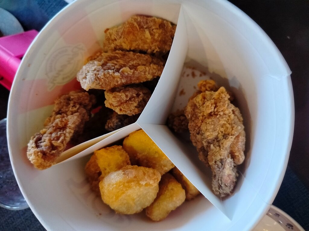 Заказал комбо крыльев и бургер, всё понравилось! Отстоял очередь, персонал приятен, ждал где-то минут 30, успел оценить интерьер и чистоту.