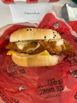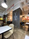 В зале чисто, комфортно. Интерьер современный, на втором этаже есть места и со стульями и с диванчиками. Туалет чистый, на дверях есть крючки для одежды и сумок. Но вот ожидание и реальность еды вообще не соответствуют друг другу. Курицы большой кусок-это плюс, а остальных ингредиентов явно пожалели. Долгое ожидание заказа. Дополняю: за 2,5 года обслуживание не изменилось совсем! Все так же мучительно долго! Один человек на кассе и этот же человек на выдаче! В выходной день. Отвратительно! Как работает отдел персонала остается загадкой!