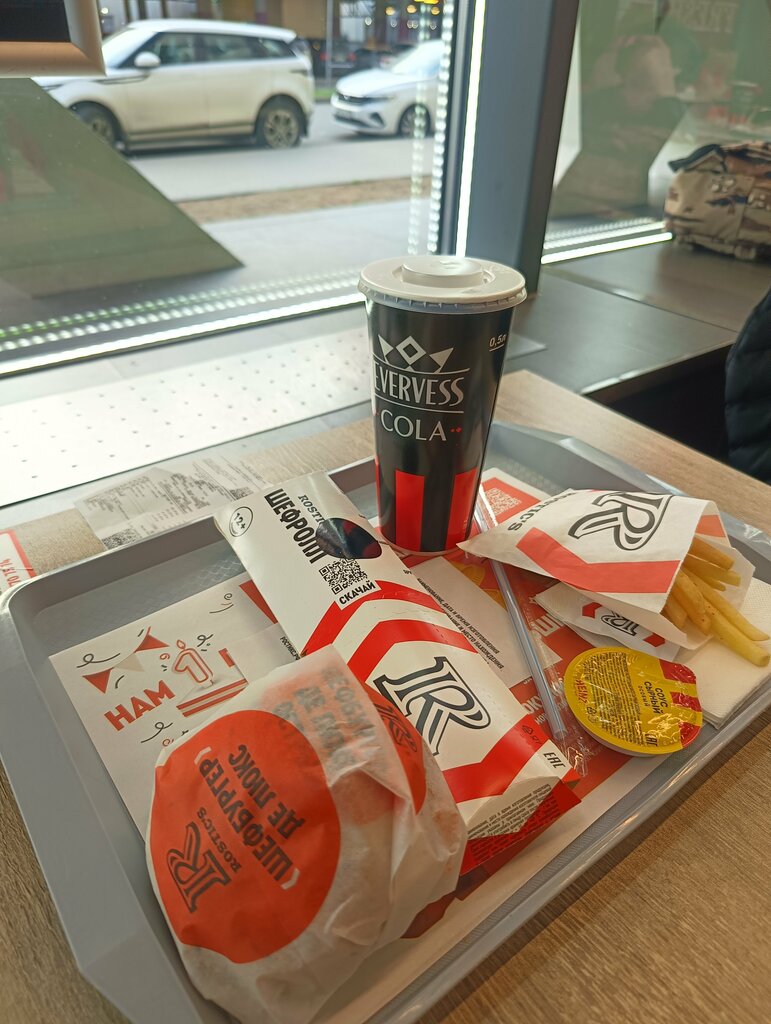 Неприятным сюрпризом стало то, что два из трёх терминалов не работали, а сделать заказ через приложения не удалось, потому что "что-то пошло не так". Вот прям отстойно было стоять очередь к терминалу после косяка с приложением. Если не в состоянии терминалы починить, то хотя бы не вводите покупателей в заблуждение qr кодами, отправляя на неработающее приложение. Готовят быстро. Неожиданно быстро. И вкусно. Брала бургер с говядиной и ягодным соусом.