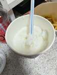 Байтсы сухие и твёрдые, словно приготовили их ещё рано утром. В милкшейке одно мороженое, через трубочку вообще пить невозможно