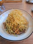 Недавно были с семьёй (5 человек), сели на веранде. Столики небольшие, у нас все блюда не помещались. По еде: порции средние, вкус еды неплохой. Лапша с говядиной порадовала; курица в кисло-сладком соусе понравилась, но показалась пресной по вкусу; брали порцию 12 осьминогов - вкусные, но очень маленького размера; кольца кальмаров в панировке оказались резиновые, но ко вкусу претензий нет. Из напитков могу порекомендовать безалкогольный с маракуйей. В целом место понравилось, за это хочется поблагодарить милую девушку официантку, очень вежливую и учтивую.