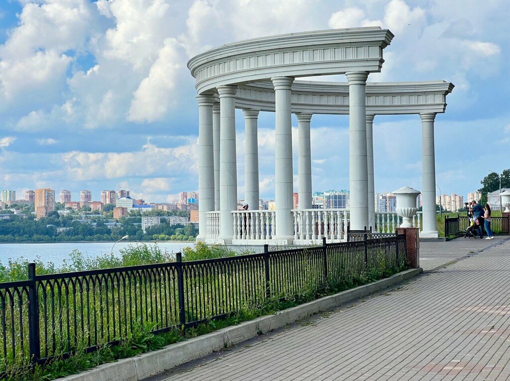 Популярное место для экскурсий, прогулок, свадеб и иных праздничных мероприятий. Красивый вид на Ижевский пруд и набережную, особенно на закате. Можно выйти из парка Горького и оказаться сразу в этой ротонде.