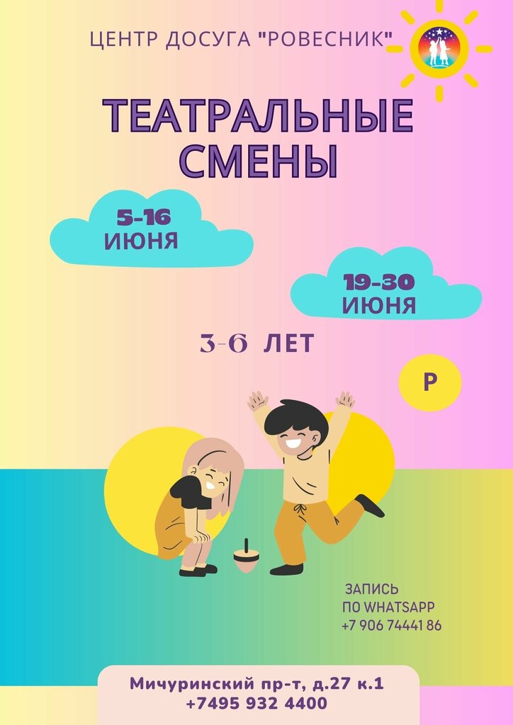 Classes for children:arts and crafts, pictorial art, sport activities, singing, dancing, theatrical creativity, chess