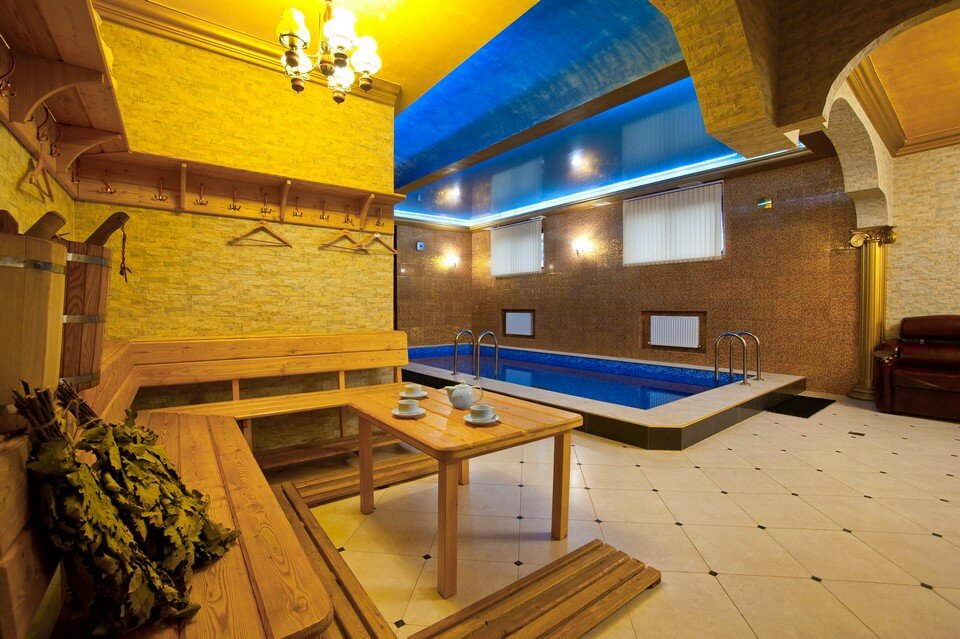 Очень хорошая баня на дровах с большим и чистым бассейном. Остались довольны.