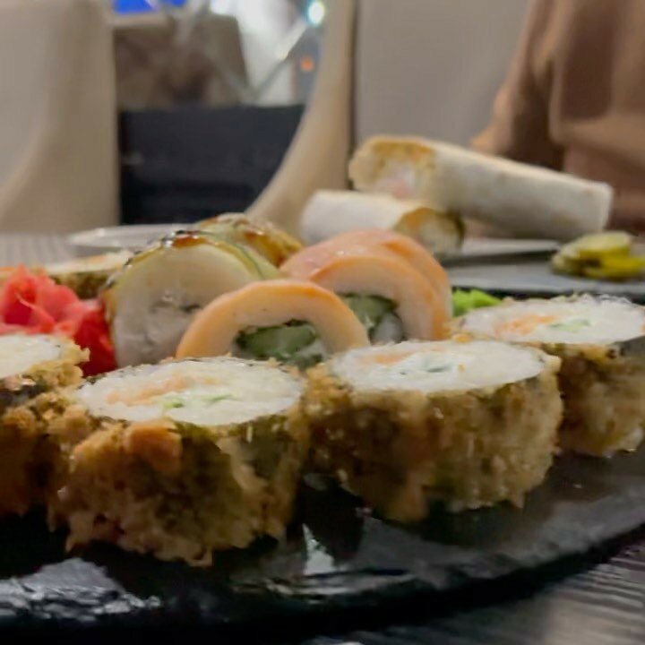 Зашли покушать официант шел пол часа ,запах не приятный был,сидели так ничего не выбрали обстановка не понравилась,и ушли ,а на дом заказывали когда ,ну суши не очень ,а лапша вок вкусная была
