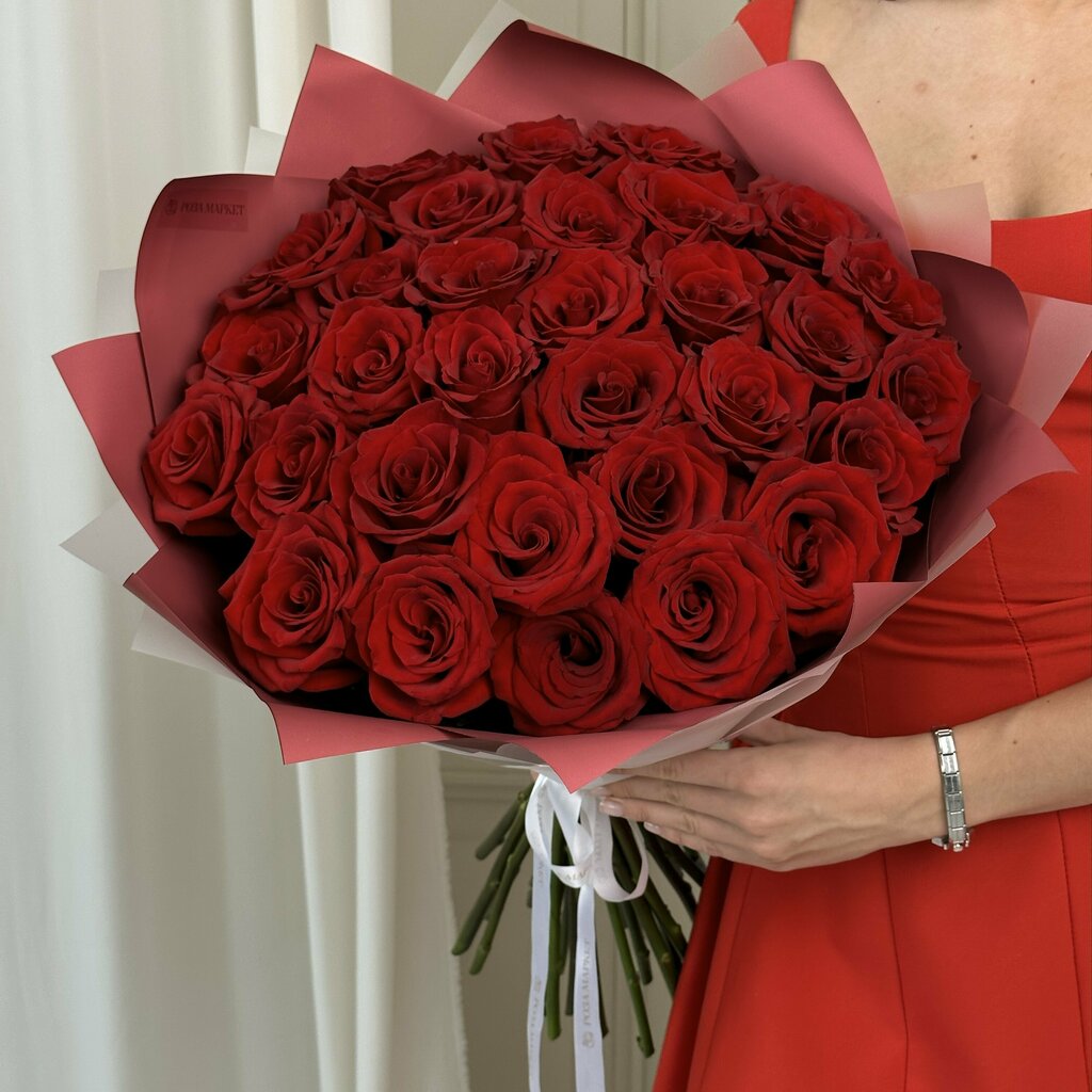 Букет из 25 кенийских розочек 50 см в фирменной упаковке