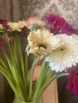 A review of the delivery was published. This bouquet was delivered to me today. There is a spoiled gerbera in the center of the bouquet. The answer to my appeal to them was that the flowers were perfect. They said they'd give you a discount on your next purchase. It's a pity that such a large chain of stores treats its customers this way. There is no way to take a closer picture of the bouquet. Added a photo of the perfect flower