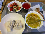 Отличное заведение! Очень часто захожу на бизнес ланч. За 450 рублей так вкусно нигде не поешь! Хинкали отпад! Сочные, достаточно мяса, прям от души! Супчики и харчо и куриный тоже прекрасные! Салат с хрустящими баклажанами космос! Всем советую данное заведение!!! Ps: на фото куриный суп уже чуть подъел! Поэтому не так много с виду начинки, но ее тоже хватает.