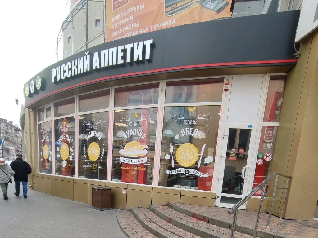 Это отделение кафе Русский аппетит находится на улице Куколкина,что напротив Галереи Чижова с боку. Знаю его дввно открылось оно одно из первых. Всегда вежливые продавцы. Всегда чистота в зале. Еда вкусная не просроченая. Иногда бывая в этом месте захожу к ним.