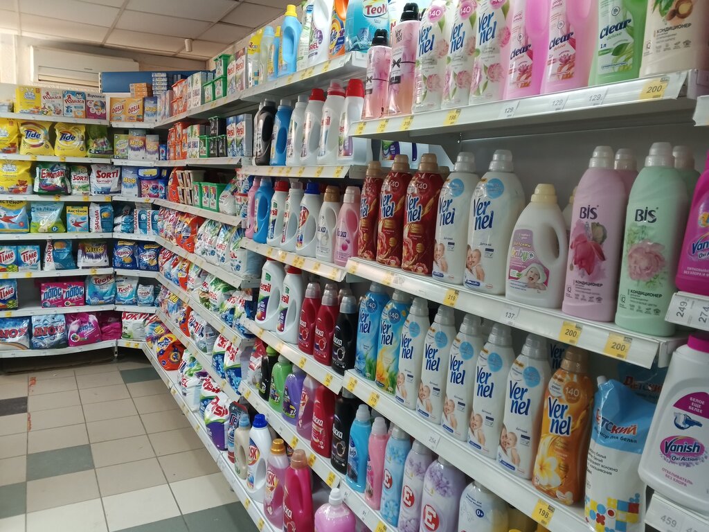 В магазине продается средства для дома, стиральные порошки, косметика, средства для гигиены. Также там можно приобрести шампунь, бальзам, маски, краски для волос и другое. Столько разного товара) лучше сразу спросить у персонала где и что лежит. Персонал поможет. Есть парковка, рядом магазины, аптеки, хлебобулочные изделия, шаурма. Не далеко остановка.