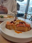 Зашла перед работой в кафе, приятная атмосфера, в зале чисто, светло. Не могла определиться, что выбрать, спасибо Дарине за помощь 😅 Заказала большой завтрак с лососем, не прогадала, овощи свежие, будто только что с грядки, лосось прям в точку, не пересолен 👍 Зайду вечерком за кофе с десертом ❤️