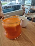 Картофельные драники больше похожи на оладьи, нежели на драники Бенедикт с лососем.. Голландский соус должен растекаться, а не вот это вот сверху... Лосось с остатками кожи.. Яйцо пашот хорошее, вкусное, растекается👍 Морковный фреш вкусный👍