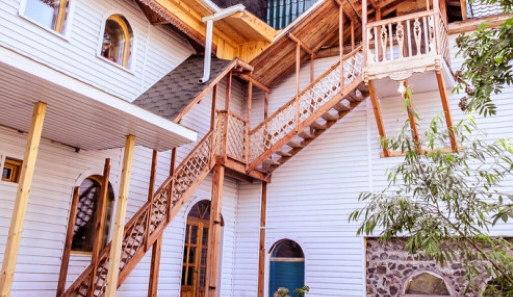 Очень понравилось месторасположение гостиницы ( на мой взгляд, это больше гостевой дом). Название соответствует архитектуре постройки. Рядом находится историческое место " Обдорский острог", смотровая площадка с видом на реку, красивый городской парк-сквер, который светится и днём и ночью, а также храм св. Петра и Павла. Также рядом Магнит, Пятёрочка и недалеко фирменный магазин "Сделано на Ямале". Внутри всё также соответствует стилистике - деревянные резные рамы, лестницы (немного крутые), картины на стенах, деревянная мебель (большая двухспальная кровать очень удобная),приятный запах дерева. В номере очень тепло, спали с открытым окном. Кстати, сон прекрасный благодаря тишине и чистому воздуху. Есть телевизор, микроволновка, чайник. Отсутствие ресепшн, админа за стойкой и прочих отельных примочек нисак не повлияло на моё восприятие. Для меня "Русский север" - это больше гостевой дом, чем гостиница. Благодарю Сергея - управляющего за домашнюю обстановку. Рекомендую тем, кто хочет насладится тишиной и прочувствовать атмосферу Севера!
