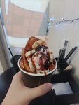 Очень вкусные вафли и выглядят аппетитно) Приветливые сотрудники всегда поднимают настроение. Самый вкусный чай латте именно здесь) Ps. Для полного счастья не хватает таро Милка и пунопана