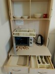 Сейчас нахожусь в мини- командировке на 3 суток. Заселился с ребятами втроем в 4-х местном номере! В номере есть свой совмещённый санузел (туалет + душевая кабина). В номере микроволновка и чайник. Также есть тарелки, стаканы. В каждом номере гель, шампунь, средство для мытья посуды. В номере чисто. Уборка производится видно часто. Спасибо этой гостинице. Ставлю 5 баллов. Может быть единственный минус - что нельзя готовить.. Но нас не напрягает. Рядом куча магазинов с готовой едой.