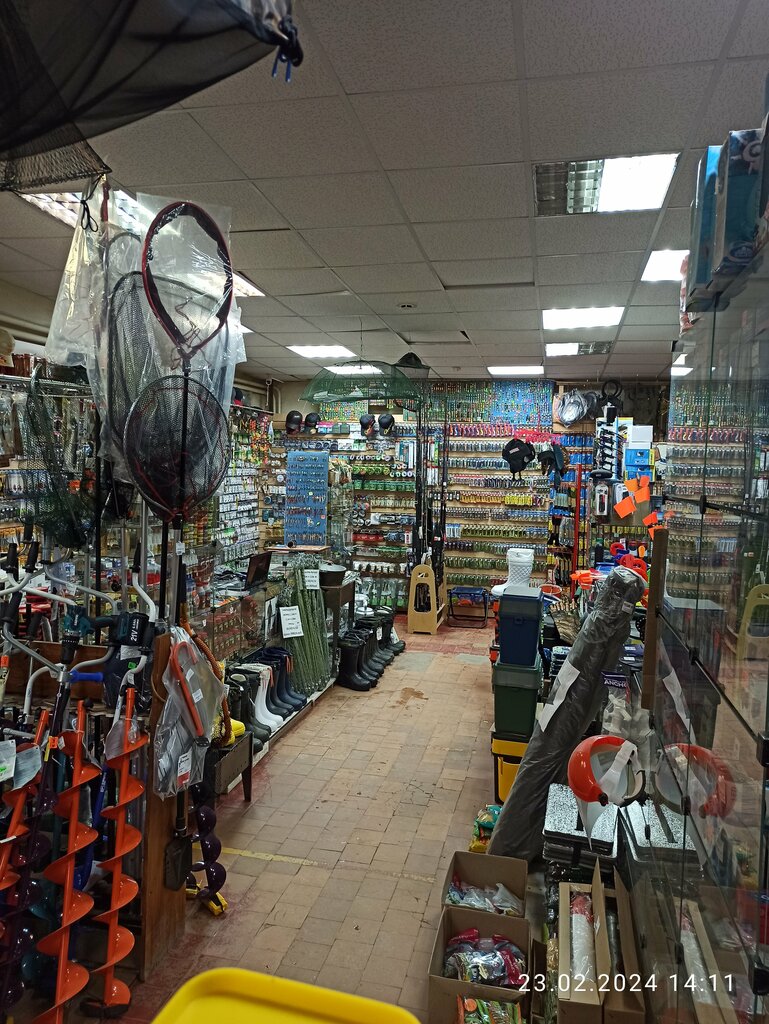 Ассортимент большой, есть практически все . Цены адекватные. Расположение удобное. Хозяин доброжелательный. По его рекомендации купил воблер, щуки его обожают. Третий сезон на него ловлю, уже весь искусанный но без рыбы домой не возвращаюсь. Очень Рекомендую!