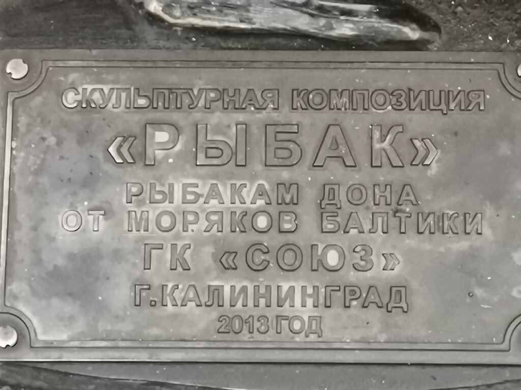 Скульптура "Рыбак" одно из лучших украшений набережной города Ростова-на-дону. Надпись на табличке внизу скульптуры гласит : "Подарок рыбакам Дона от моряков Балтики ,ГК"Союз",город Калининград. Очень много людей фотографируются рядом с Рыбаком и на Удачу трут его выступающие части. Очень любят тереть нос Рыбаку! Если так дальше пойдёт скоро Рыбак останется без носа. Оставьте ,пожалуйста, НОС Рыбака в покое !!! Можно уделить внимание другим частям скульптуры. Зубы например:)) P.S. К сожалению современные вандалы приложили руку к рыбаку я отломили часть удилища. Вот бы его восстановить...