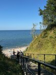 Есть место для парковки, огороженная детская площадка, хороший спуск к морю по металлической лестнице. Вид шикарный на море. Пляж внизу каменный.