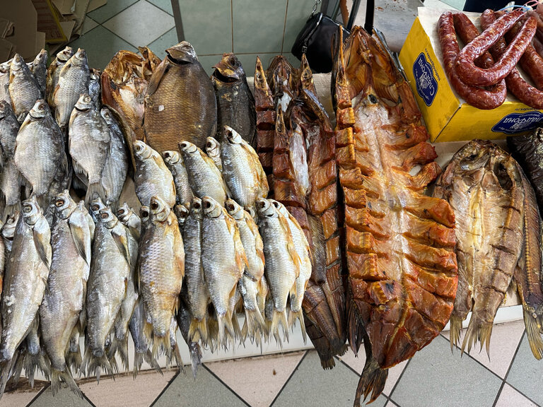 Вчера были на рынке. Ехали с ожиданием большого выбора вкусной рыбы по нормальной цене. Первое впечатление испортила стоимость большого военного леща - 1т.р. за килограмм! Что за бред?? Второе впечатление, которое испортило вообще все - это тухлый копченый лещ, которого мы распаковали дома. Ехали всего 4-5 часов, на улице жары не было, сразу по приезду положили в холодильник, но утром уже его есть было не возможно. Выброшено на ветер 650₽ и хорошее настроение! Как-то раньше все было более достойно на этом рынке!