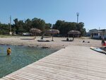 Открыли для себя душевное место, чистый песчаный пляж, чистое море, кабинки для переодевания, зонтики деревянные, удобная парковка, небольшой лесок , оборудованный мангальными зонами, кафе с напитками, мороженым, фастфудом. Много рыбы в воде, медуз нет, сперва мелководье, пирс с которого можно прыгать, много детворы. Понравилось очень! Место куда хочется вернуться!