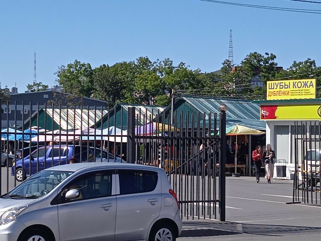 Не плохой рынок,есть овощи,фрукты,мясо,рыба.Вкусные пирожки с разными начинками.Парковка,ателье,туалет.Павильон японских товаров.Большой магазин одежды.Кафе на разный вкус.
