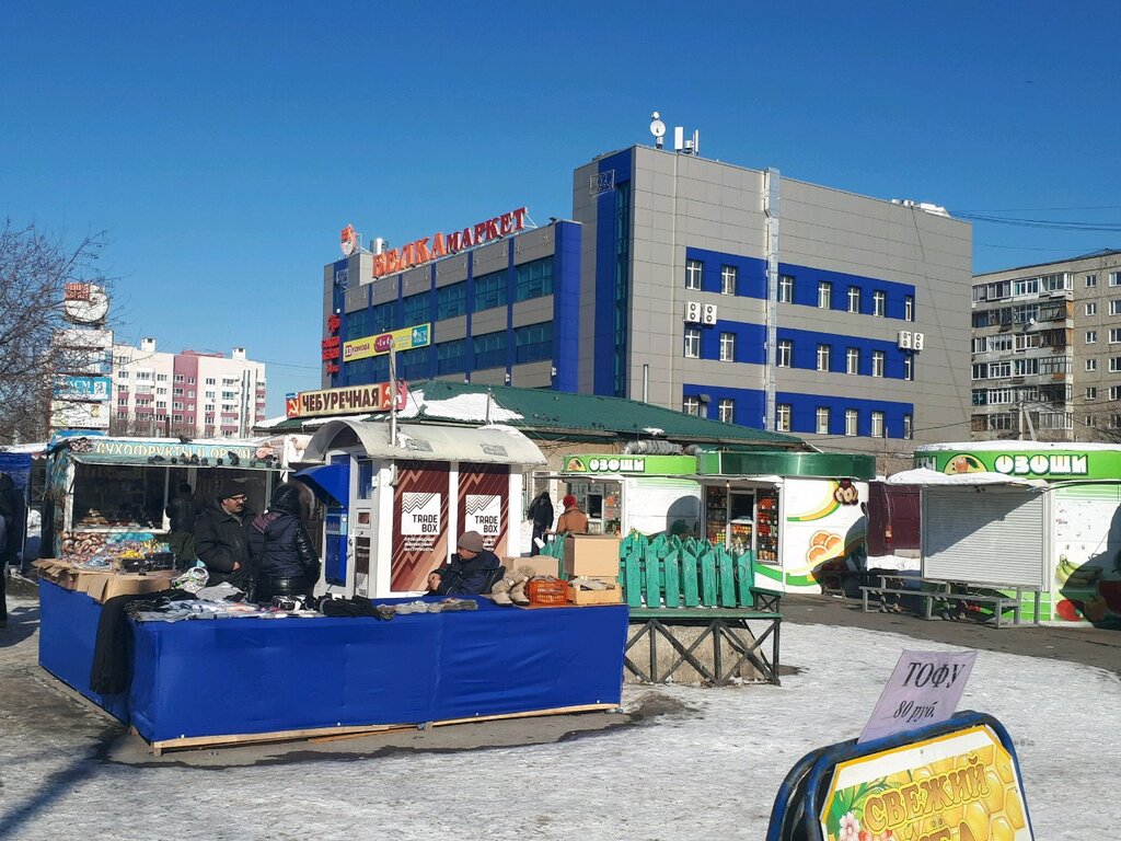 Небольшой уютный рыночек, обратите внимание на павильон «орехи-сухофркты» там всегда отличный ассортимент. Есть палатки с овощами и фруктами, продавцы одни и те же обычно хорошо следят за качеством и ассортиментом , вежливы и внимательны. На рынке есть павильончик где можно сделать различный мелкий ремонт : ключи квартиры, машины и т.п.