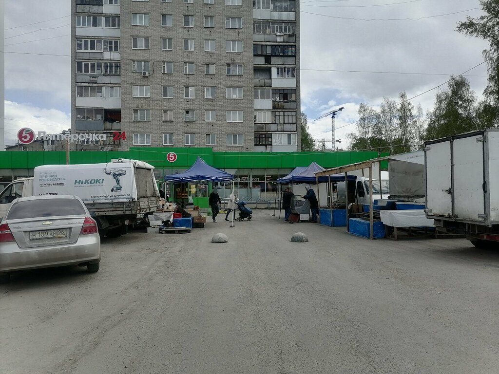 Все, что душе угодно в плане свежих овощей, фруктов, орехов, меда, сала, цветочки, зелень, всё это на Кольце Эльмаша, трамваи есть всегда, рядом Мясной центр, три Магнита, Пятерочка, Первый Рыбный, отличные аптеки, салоны связи все, Ермолинский, Бристоль, Сбербанк, одежда, бургеры с шаурмой. В киоске с надписью Туалет самые дешевые сигареты в городе, большой выбор. Всем советую посетить!