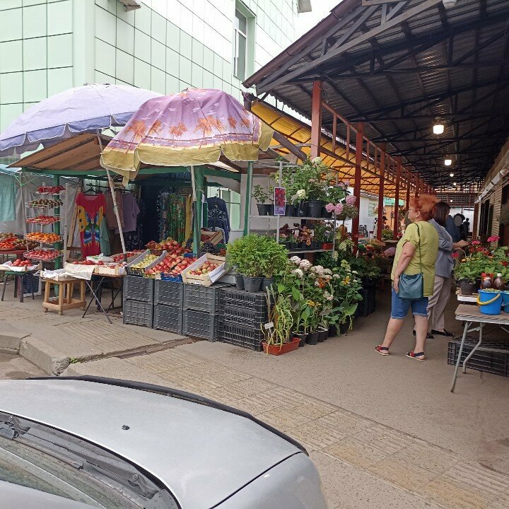 Тут две части. Небольшая внутри (много сырого хорошего недорогого мяса, нормальная молочка, туристические деликатесы, чаи). Прикупили в одной точке вкусную тонкую колбасу в шнурочках под названием Швейцарская. Медом нормальным здесь не запастись - только сувенирным. Сыры неплохие, но и очень недешево. Есть сувениры. Вторая часть на улице. Здесь в июле частники продавпли вишню, иргу, кедровые орешки по 100 р баночка, овощи. Цены не низкие. В вещевую часть не ходили.
