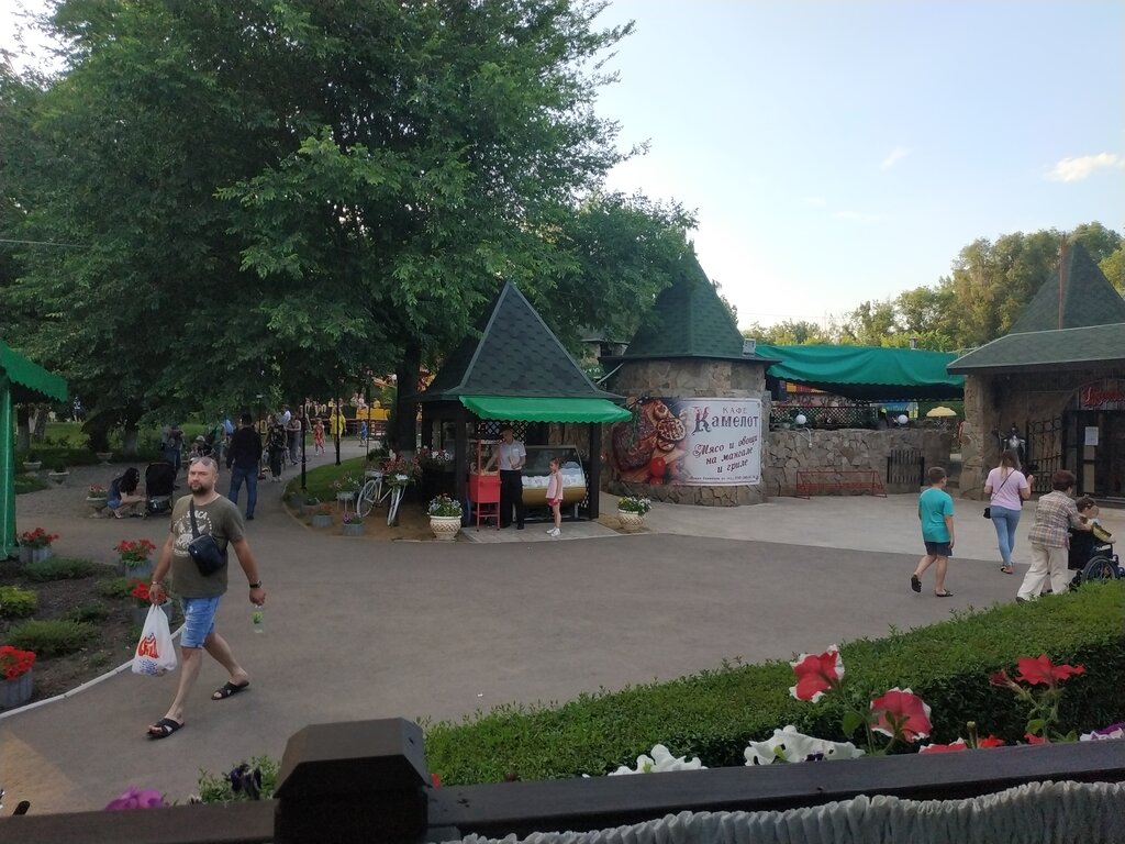 We visited the park on May 1, 06/09/2025 The Camelot Restaurant is located in the park 1. The atmosphere is 10 out of 10 (beautiful cozy gazebos on the water, all in flowers, garlands, a separate star for the fountains) 2. Food . 3 out of 10. I didn 't like the word at all . Drinks (lemonades) soda with ice (a lot of ice) and some kind of syrup for color. Coffee 9 out of 10 ,ordered vanilla raf Pizza Chirizzo one name, cheese sides were not found as stated, the dough was not tasty, there was only a smell from the bacon. 4.Maintenance . For a very long time, the waiter is not interested in the guest at all. We waited 30 minutes for them to count us . We won't go back there anymore