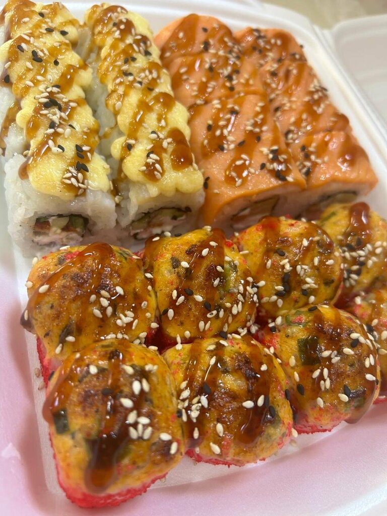 Заказывали сет Жемчужина (запеченые и жаренные) и роллы с угрем. Из плюсов в подарок положили еще одни роллы. Из минусов из всех роллов вкусные только запеченые. В остальных очень много риса, мало начинки, вкус не выраженный, кажется все роллы одного вида. В жаренных панировка перебивает вкус начинки, и чуствуется только масло и сухари. Кроме того задержали доставку на 40 минут. До этого заказывали у них 8 марта, ждали три часа, в результате вообще заказ не доставили. Решили дать заведению второй шанс, т.к. отзывы не плохие, но третьего точно не будет!