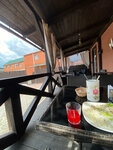 Хорошее место в ожидании машины с ТО. Внутри симпатично, банкетный. На террасе хорошо посидеть в жаркий день, попить морсику и перекусить. Еда средняя, меню очень маленькое.