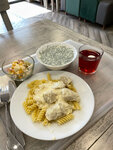 Ужасно не вкусно. Макароны не соленые. Пюре резиновое , холодное и не соленое. Картошка по деревенски сырое. Пошли покушать по отзывам, попробовали и не стали есть. Все оставили .. не советую.