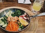 Заведение интересное,еда вкусная ( порция сырников удивила ) 5 сырников вместе 3х.Больше всего понравились украшения живыми цветами и лимонами,смотрится сочно и свежо. Мой заказ птитим с морепродуктами (порция сытная ) птитим с говядиной тоже очень вкусный,советую данное заведение к посещению.