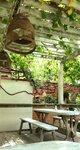 Кормят вкусно. Есть прохладное вино. Некого вида лаундж с лягушками и собаками хозяйки)