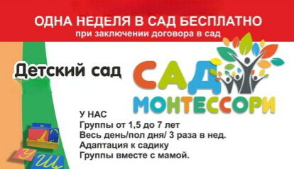 Ходили в Сад Монтессори на протяжении двух лет. Пошли в возрасте 1.7, прошли максимально мягкую адаптацию. В 1,9 уже ходили на полный день без слез, каждое утро бежали в садик с радостью. В первую очередь хочется выразить огромную благодарность руководителю Екатерине за максимальную вовлечённость в свое любимое дело! Из больших достоинств: *большой выбор материалов по методике Монтессори *отсутсвие пластиковых игрушек *индивидуальный подход к каждому ребёнку *отсутсвует текучка кадров, педагоги к которым мы пришли нас же и провожали *безопасность в помещении на высоком уровне *увлекательные ежедневные занятия *высококвалифицированные педагоги дополнительного образования Достоинств действительно много, но главное - это уверенность, что ребёнку в садике очень комфортно. Спасибо за тёплую атмосферу!