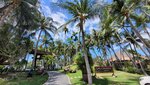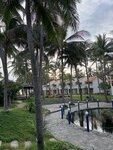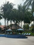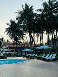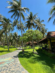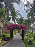 A great, cozy 4-star hotel. Located at the end of the tourist area of Mui Ne. The main territory of the hotel is located on the 1st line, in a grove of coconut palms. There is a swimming pool with a maximum depth of 1.4 m, a pond. Accommodation in single-storey bungalows with 2 rooms (overlooking the pool and the hotel grounds), in two-storey houses (overlooking the sea, the pool and the hotel grounds), as well as in the main 4-storey building (overlooking the garden and the hotel grounds). There is also accommodation in a 2-storey building (2nd line) in standard rooms across the street, garden view. We lived in the main building on the 3rd floor, in a 2-bed Superior room with a view of the garden. There is also a separate restaurant building and a coastal bar on site. The territory is average in size and cozy. In addition to coconut palms, there are some tropical flowering shrubs and a few mango trees. The pool is not very shaded, so the water warms up. The beach area is equipped with a pair of bungalows with a roof, as well as sun beds. The coastal line itself is of medium width and clean. Along the coastline along other hotels, you can walk to the central beach (about 1.5 - 2 km). The meals at the hotel (breakfasts) are quite varied, fruits are in good quantity and assortment. It was also possible to attend dinner (unlimited, buffet) 3 times a week in the evening for an additional fee. You can visit 2-3 times, but then it's not interesting anymore, since the menu repeats, and the most delicious grilled dishes end early enough. Our room was nice, with a king-size bed, a large balcony with armchairs, and a clean shower without a musty smell. The hotel staff was helpful, the rooms were cleaned daily, and towels were changed daily. At departure, we prepared a dry ration for the trip. I was somewhat disappointed by the fact that when checking the room at the reception, they tried to bill us $ 10 for the fact that there was some kind of stain on one towel (possibly from cosmetics), although there were no complaints about any stains during the stay. But we refused to pay and left like that. I think it was the idea of the negligent staff to earn a little extra money for us, but we are experienced travelers and such tricks do not work with us. In general, despite the latter fact, I can safely recommend the hotel for a visit.