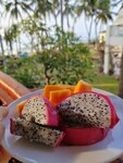 The hotel is nice. The territory is green, beautiful, lots of palm trees. We lived in a room across the street. It's a very nice place there too. There is European food for breakfast, a fairly varied buffet, there were always fruits, onions, watermelon, pineapple, longans...